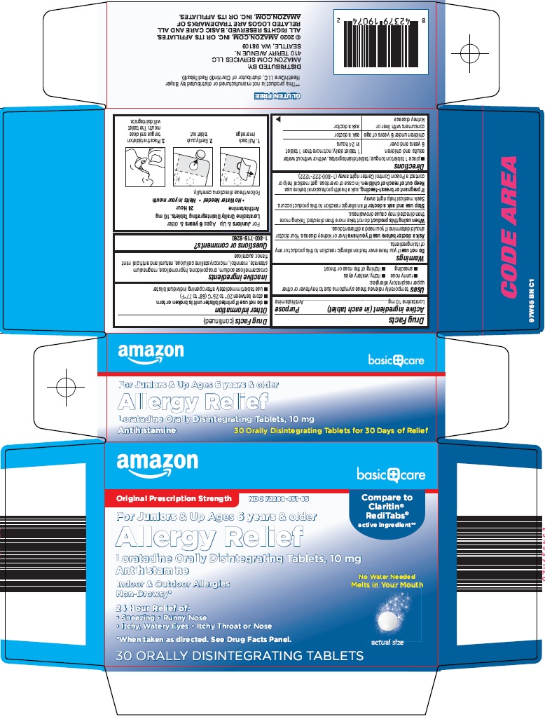 The following image provide visual information about the product associated with Basic Care Allergy Relief NDC 72288-451 by Amazon.com Services Llc, such as packaging, labeling, and the appearance of the drug itself. This resource could be helpful for medical professionals, pharmacists, and patients seeking to verify medication information and ensure they have the correct product.