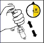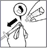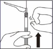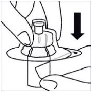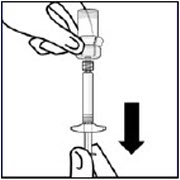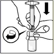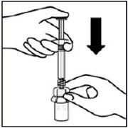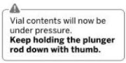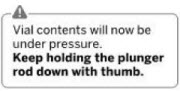 Vial contents will now be under pressure. Keep holding the plunger rod down with thumb.*
