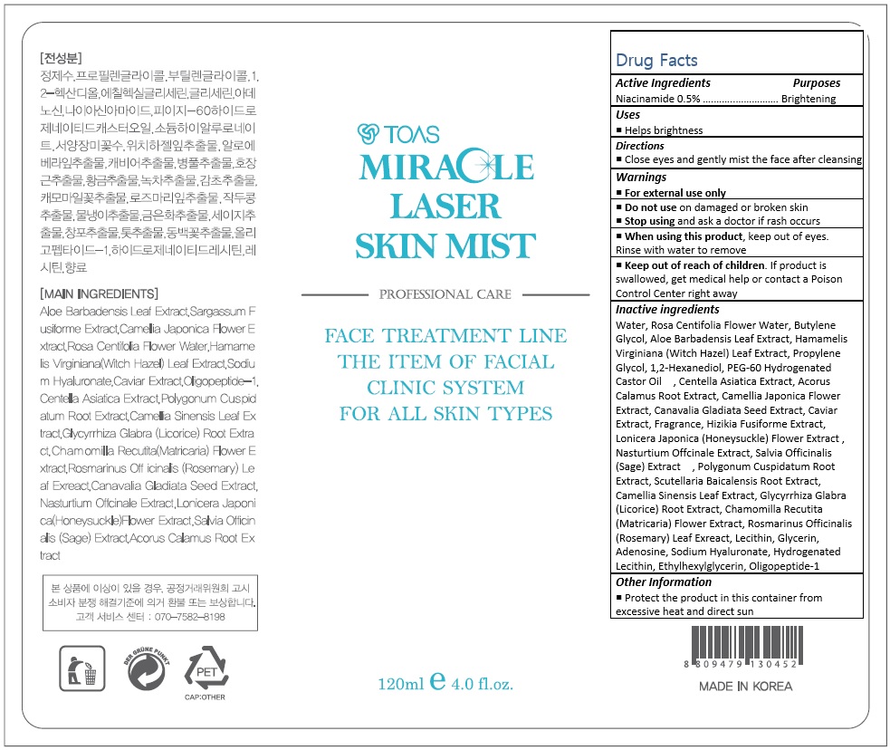 The following image provide visual information about the product associated with Miracle Laser Skin Mist NDC 72557-003 by Toas Co., Ltd., such as packaging, labeling, and the appearance of the drug itself. This resource could be helpful for medical professionals, pharmacists, and patients seeking to verify medication information and ensure they have the correct product.