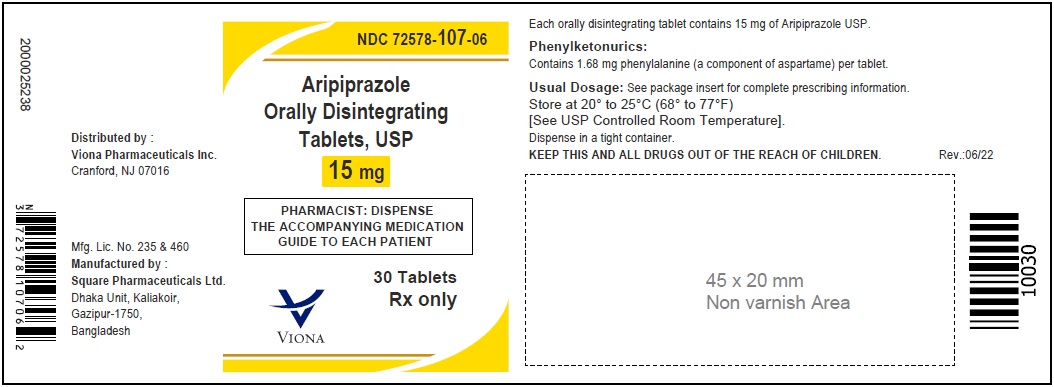 The following 12 images provide visual information about the product associated with Aripiprazole NDC 72578-107 by Viona Pharmaceuticals Inc., such as packaging, labeling, and the appearance of the drug itself. This resource could be helpful for medical professionals, pharmacists, and patients seeking to verify medication information and ensure they have the correct product.