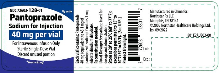 The following 3 images provide visual information about the product associated with Pantoprazole Sodium NDC 72603-128 by Northstar Rx Llc, such as packaging, labeling, and the appearance of the drug itself. This resource could be helpful for medical professionals, pharmacists, and patients seeking to verify medication information and ensure they have the correct product.