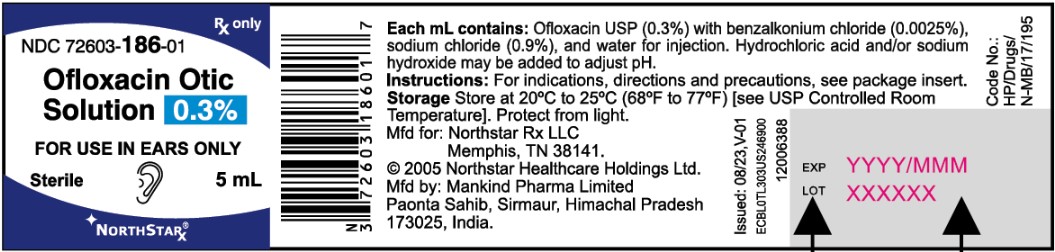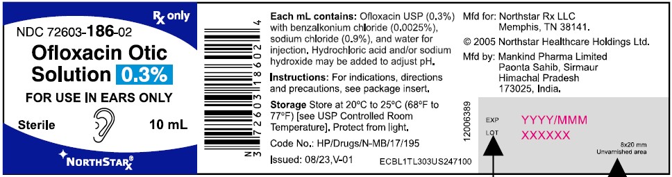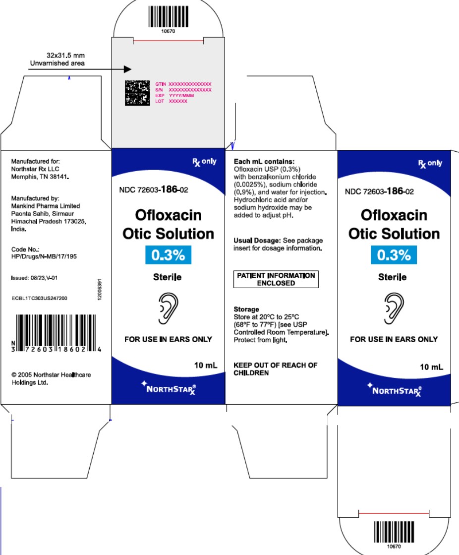 The following 11 images provide visual information about the product associated with Ofloxacin NDC 72603-186 by Northstar Rxllc, such as packaging, labeling, and the appearance of the drug itself. This resource could be helpful for medical professionals, pharmacists, and patients seeking to verify medication information and ensure they have the correct product.