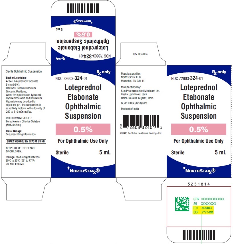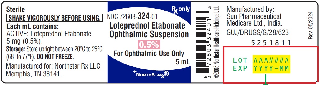The following 3 images provide visual information about the product associated with Loteprednol Etabonate NDC 72603-324 by Northstar Rxllc, such as packaging, labeling, and the appearance of the drug itself. This resource could be helpful for medical professionals, pharmacists, and patients seeking to verify medication information and ensure they have the correct product.