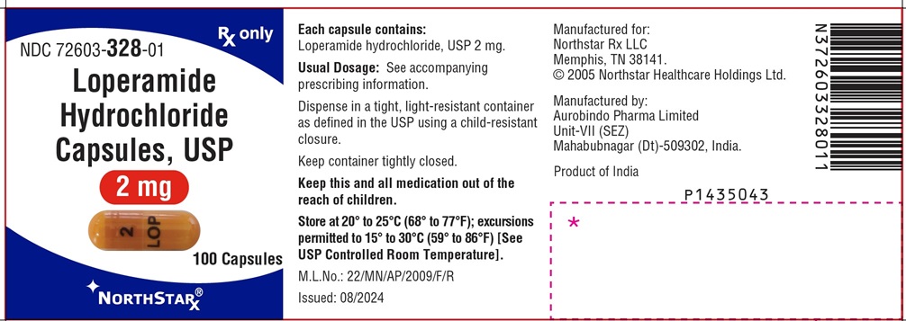 The following 2 images provide visual information about the product associated with Loperamide Hydrochloride NDC 72603-328 by Northstar Rx Llc, such as packaging, labeling, and the appearance of the drug itself. This resource could be helpful for medical professionals, pharmacists, and patients seeking to verify medication information and ensure they have the correct product.