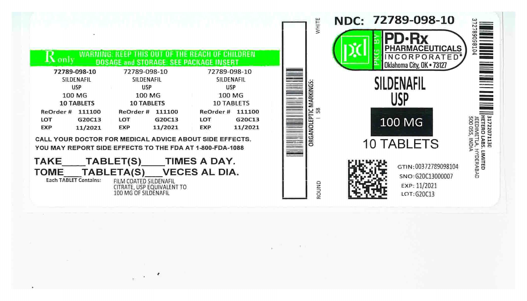 The following 10 images provide visual information about the product associated with Sildenafil NDC 72789-098 by Pd-rx Pharmaceuticals, Inc., such as packaging, labeling, and the appearance of the drug itself. This resource could be helpful for medical professionals, pharmacists, and patients seeking to verify medication information and ensure they have the correct product.
