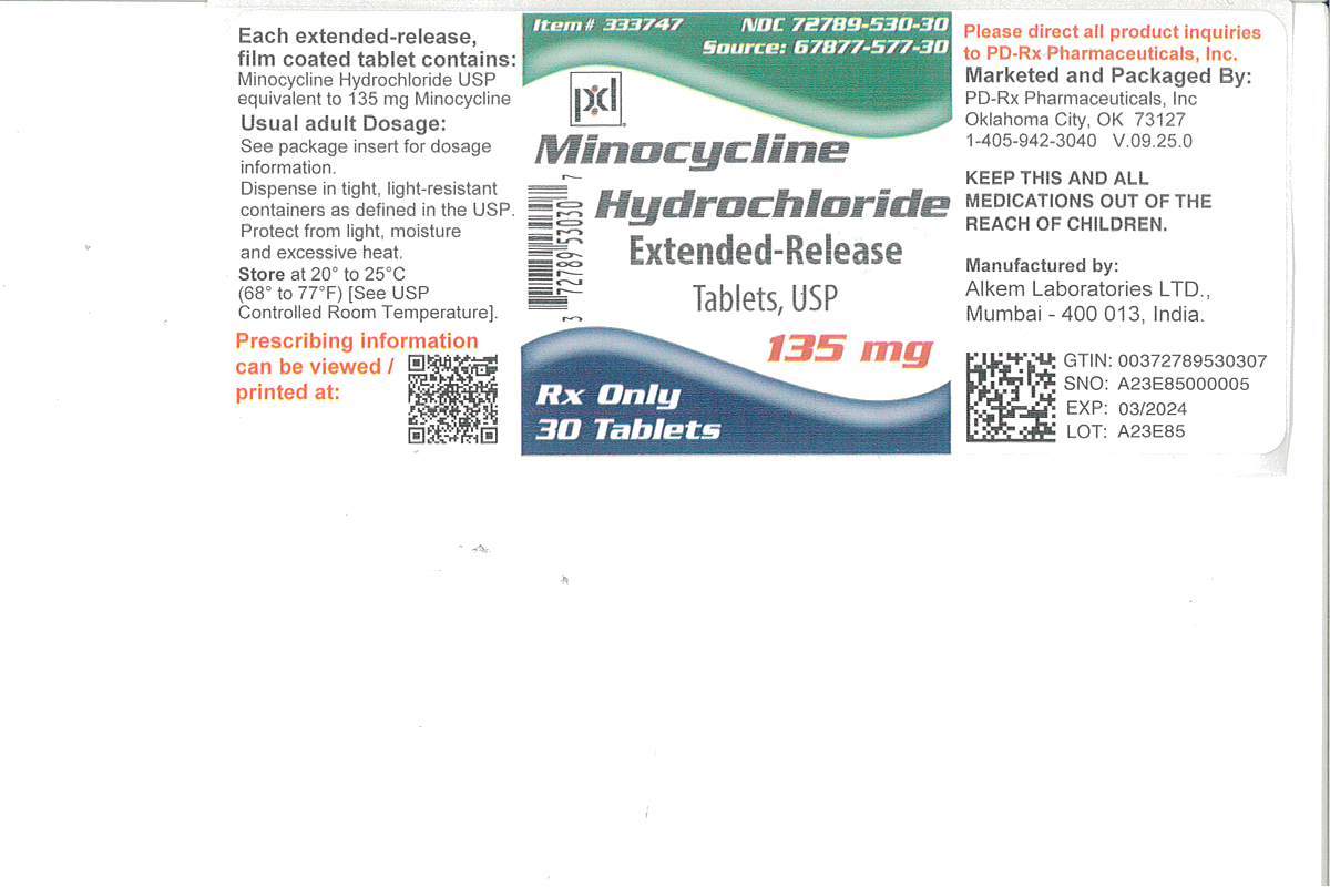The following 8 images provide visual information about the product associated with Minocycline Hydrochloride NDC 72789-530 by Pd-rx Pharmaceuticals, Inc., such as packaging, labeling, and the appearance of the drug itself. This resource could be helpful for medical professionals, pharmacists, and patients seeking to verify medication information and ensure they have the correct product.