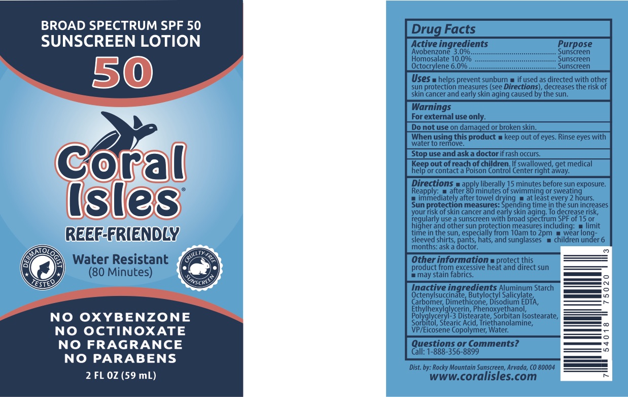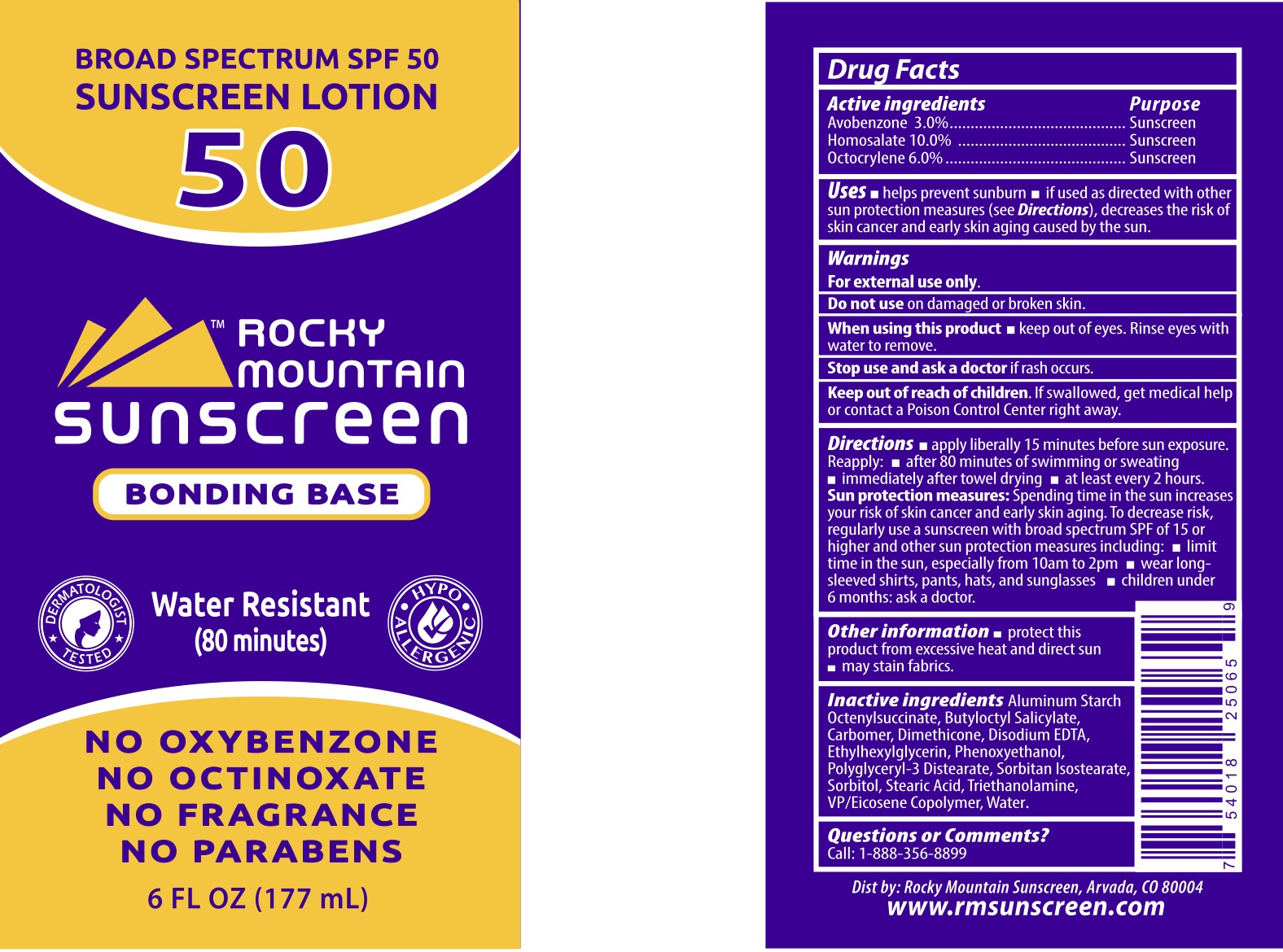 This is a sunscreen lotion with broad spectrum SPF 50 which contains Avobenzone 3.0%, Homosalate 10.0%, and Octocrylene 6.0% as active ingredients. It protects against sunburn and reduces the risk of skin cancer and aging caused by the sun. It has no oxybenzone, no octinoxate, no fragrance, and no parabens, making it safe for all skin types. The lotion needs to be applied liberally 15 minutes before sun exposure and needs to be reapplied after 80 minutes of swimming or sweating or immediately after towel drying and at least every 2 hours. It may stain fabrics and should be protected from excessive heat and direct sun. Contact Rocky Mountain Sunscreen for any questions or comments.*