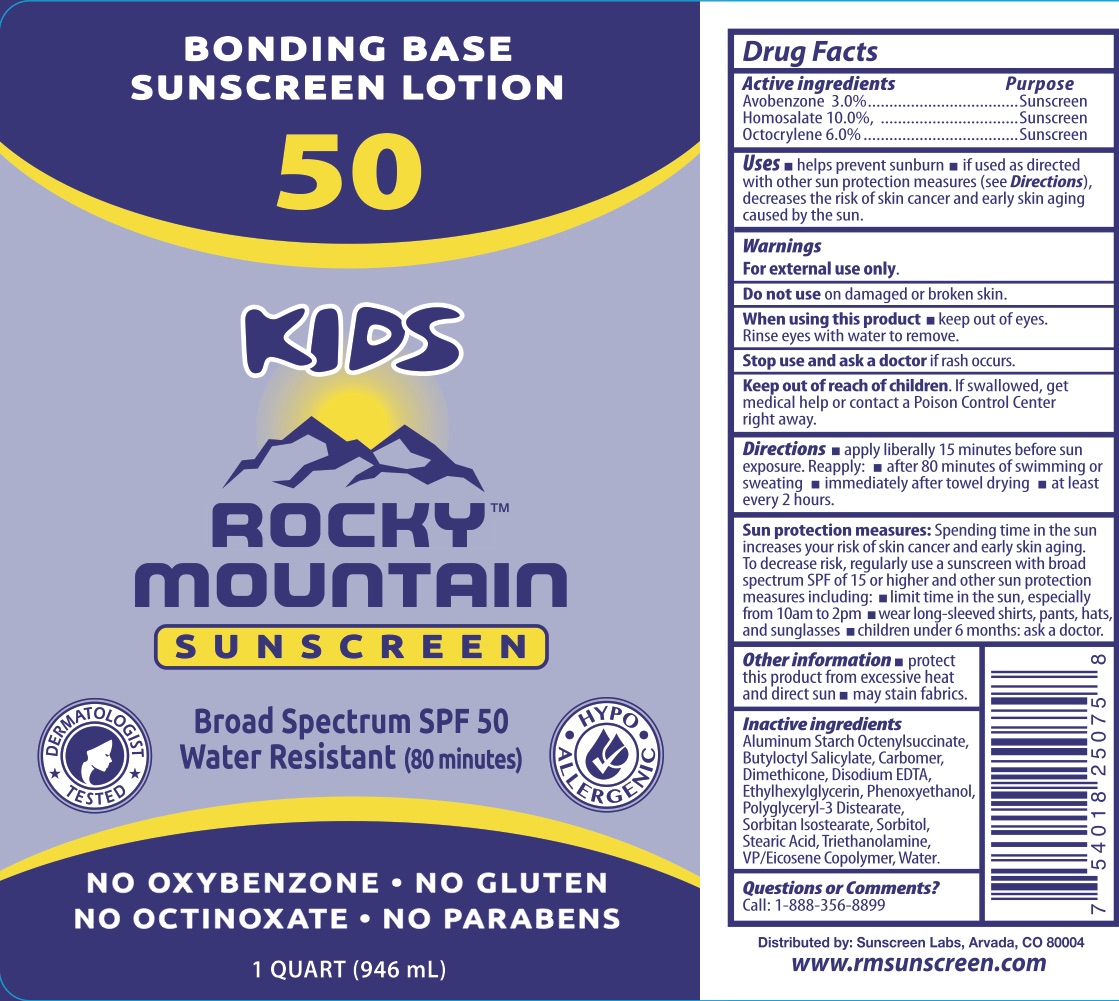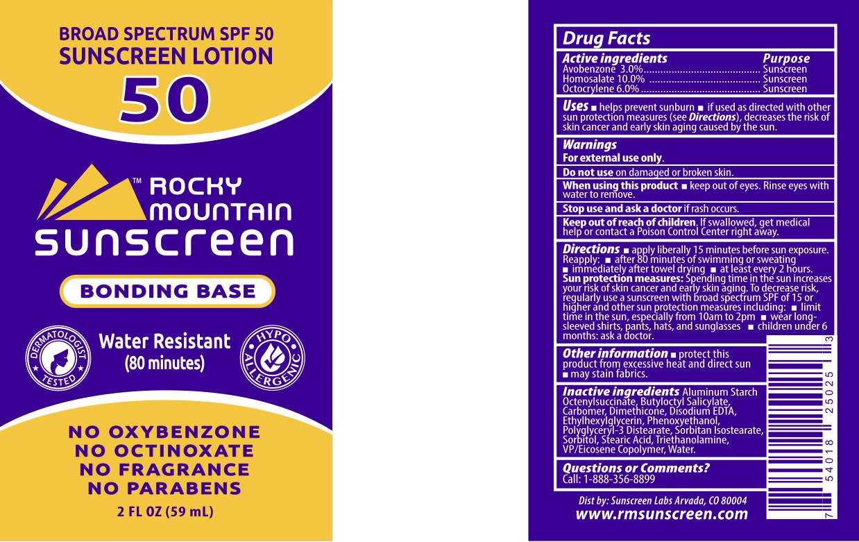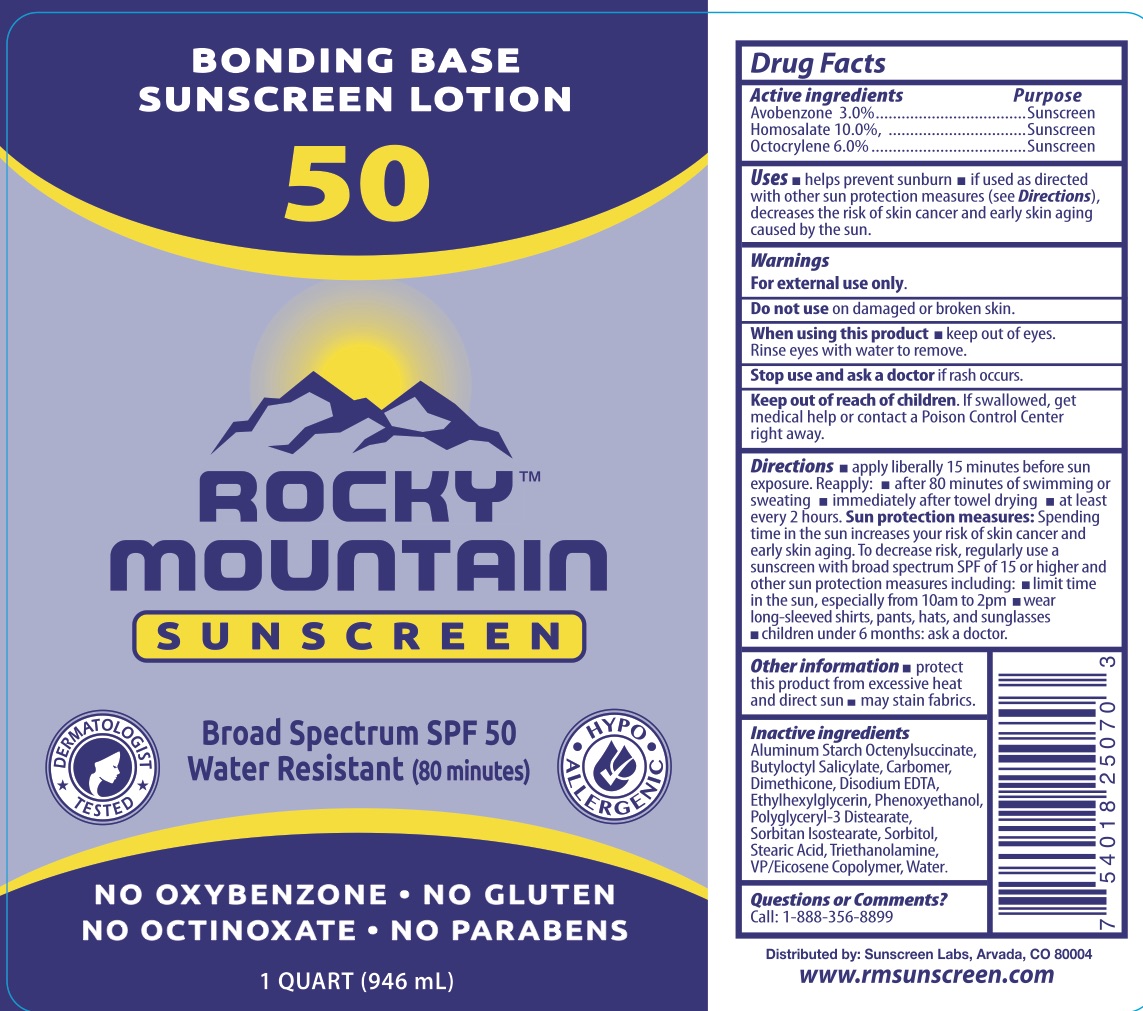 BONDING BASE SUNSCREEN LOTION is a broad spectrum SPF 50 water-resistant sunscreen lotion that contains avobenzone, homosalate, and octocrylene as active ingredients. It helps prevent sunburn and decreases the risk of skin cancer and early skin aging caused by the sun when used as directed. The product should be applied 15 minutes before sun exposure and reapplied after 80 minutes of swimming or sweating, immediately after towel drying, and at least every 2 hours. The lotion should be kept out of eyes and is not recommended for use on damaged or broken skin. If rash occurs, stop using the product and consult a doctor. Keep the product out of reach of children and protect it from excessive heat and direct sun.*