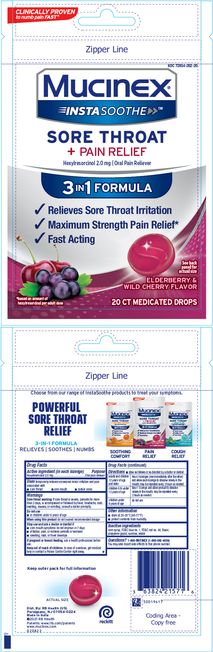 The following image provide visual information about the product associated with Mucinex Instasoothe Sore Throat Plus Pain Relief NDC 72854-262 by Rb Health (us) Llc, such as packaging, labeling, and the appearance of the drug itself. This resource could be helpful for medical professionals, pharmacists, and patients seeking to verify medication information and ensure they have the correct product.