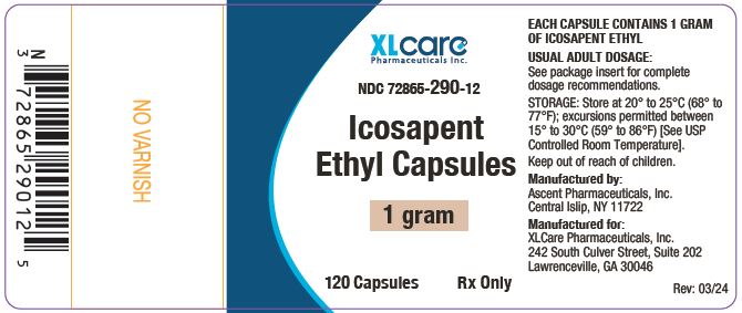 The following 4 images provide visual information about the product associated with Icosapent Ethyl NDC 72865-290 by Xlcare Pharmaceuticals, Inc., such as packaging, labeling, and the appearance of the drug itself. This resource could be helpful for medical professionals, pharmacists, and patients seeking to verify medication information and ensure they have the correct product.