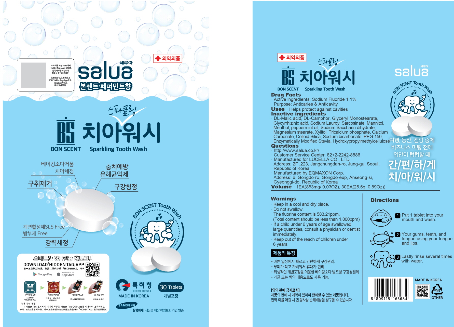 The following image provide visual information about the product associated with Bon Scent Sparkling Tooth Wash NDC 72869-010 by Lucella Co.,ltd, such as packaging, labeling, and the appearance of the drug itself. This resource could be helpful for medical professionals, pharmacists, and patients seeking to verify medication information and ensure they have the correct product.
