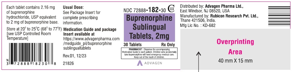 Buprenorphine sublingual tablets 2 mg - NDC 72888-182-30 - 30 Tablets Label - buprenorphine sublingual tablets 2mg 30s label