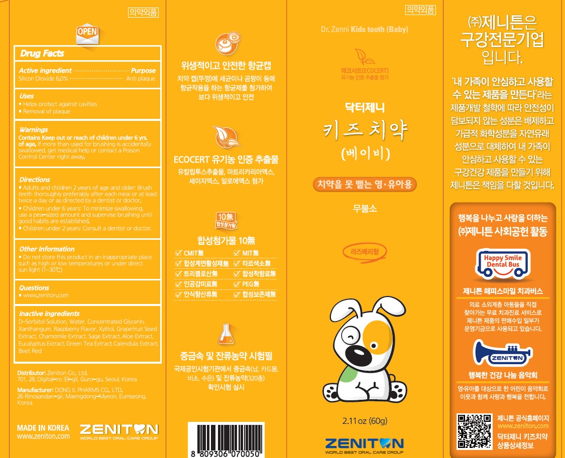 The following image provide visual information about the product associated with Dr. Zenni Kids Tooth (baby) NDC 73029-0001 by Zeniton Co.,ltd., such as packaging, labeling, and the appearance of the drug itself. This resource could be helpful for medical professionals, pharmacists, and patients seeking to verify medication information and ensure they have the correct product.