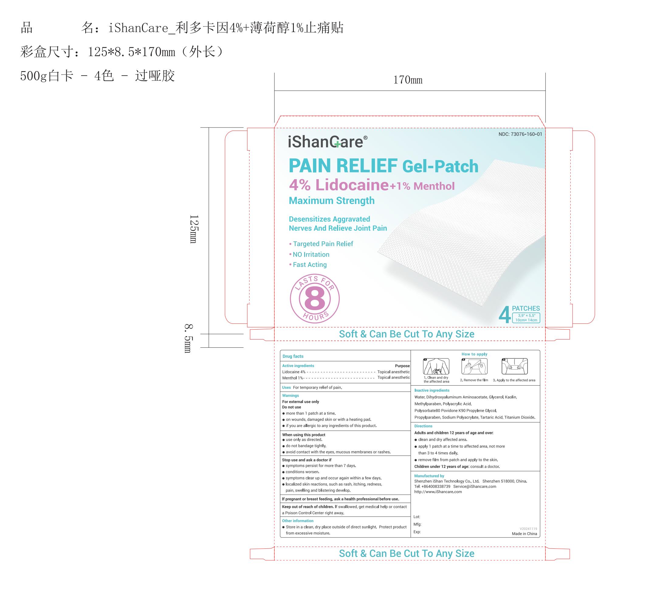 The following image provide visual information about the product associated with Ishancare Pain Relief Gel-patch NDC 73076-160 by Shenzhen Ishan Technology Co., Ltd, such as packaging, labeling, and the appearance of the drug itself. This resource could be helpful for medical professionals, pharmacists, and patients seeking to verify medication information and ensure they have the correct product.