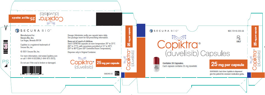 The following 8 images provide visual information about the product associated with Copiktra NDC 73116-225 by Secura Bio, Inc, such as packaging, labeling, and the appearance of the drug itself. This resource could be helpful for medical professionals, pharmacists, and patients seeking to verify medication information and ensure they have the correct product.