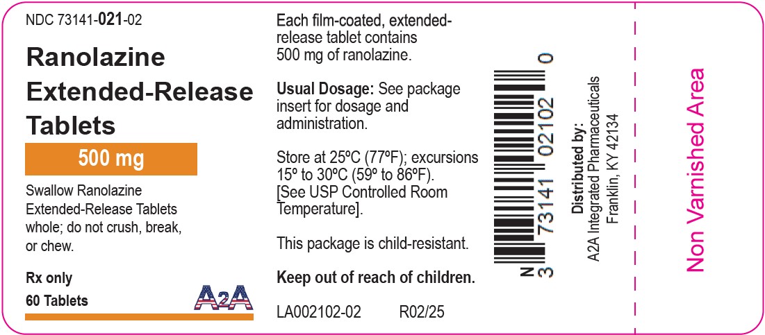 The following 3 images provide visual information about the product associated with Ranolazine NDC 73141-022 by A2a Integrated Pharmaceuticals, such as packaging, labeling, and the appearance of the drug itself. This resource could be helpful for medical professionals, pharmacists, and patients seeking to verify medication information and ensure they have the correct product.