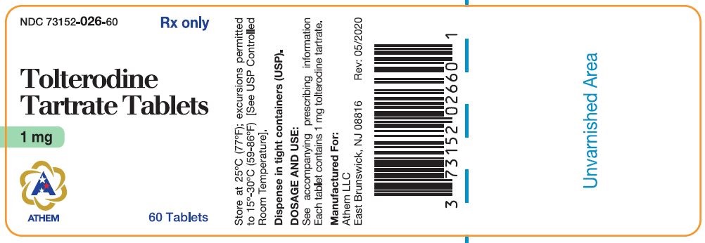 The following 4 images provide visual information about the product associated with Tolterodine Tartrate NDC 73152-026 by Athem Llc, such as packaging, labeling, and the appearance of the drug itself. This resource could be helpful for medical professionals, pharmacists, and patients seeking to verify medication information and ensure they have the correct product.