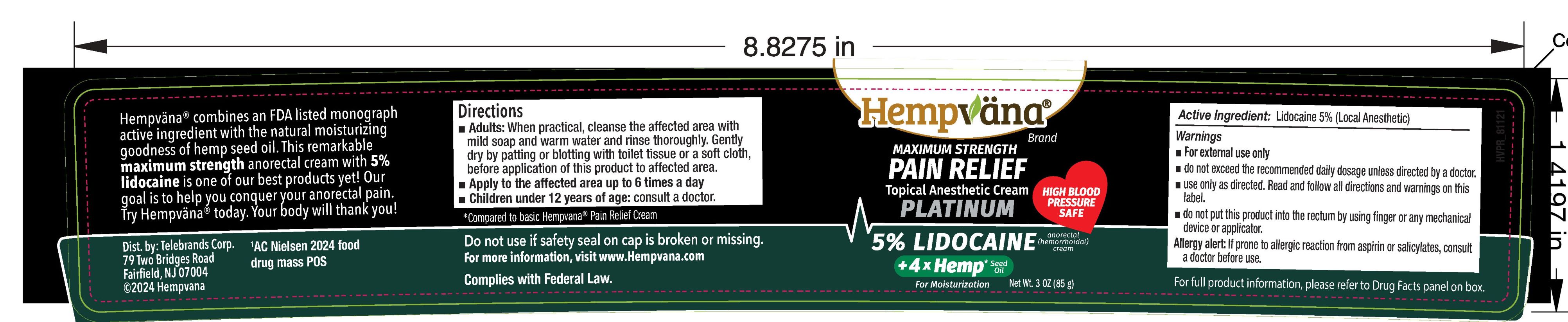 This is a detailed drug label for a pain relief cream called Hempvana, which contains 5% lidocaine and hemp seed oil. The cream is used for temporary relief of anorectal discomfort. It provides directions for adults and children, inactive ingredients, contact information, and warnings. The product is aimed at helping individuals manage anorectal pain effectively.*