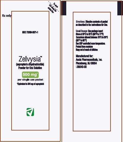 Open the packet(s) of Zelvysia powder for oral solution by folding and tearing, or cutting at the dotted line in the upper right corner of the packet. Open the packet(s) only when you are ready to use them.