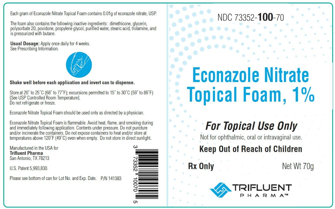 The following 6 images provide visual information about the product associated with Econazole Nitrate NDC 73352-100 by Trifluent Pharma, Llc, such as packaging, labeling, and the appearance of the drug itself. This resource could be helpful for medical professionals, pharmacists, and patients seeking to verify medication information and ensure they have the correct product.