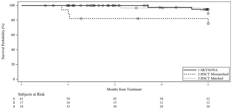 Skysona is a suspension for IV infusion containing autologous hematopoietic stem cells transduced with Lenti-D lentiviral vector suspended in cryopreservation solution containing 5% DMSO. It is for autologous use only and for intravenous use only. This medicine contains genetically modified cells and is not evaluated for infectious substances. It should be kept in the vapor phase of liquid nitrogen at < -140°C. See full prescribing information for dosage and administration. It's not available to determine Last Name, First Name, DOB, etc.*