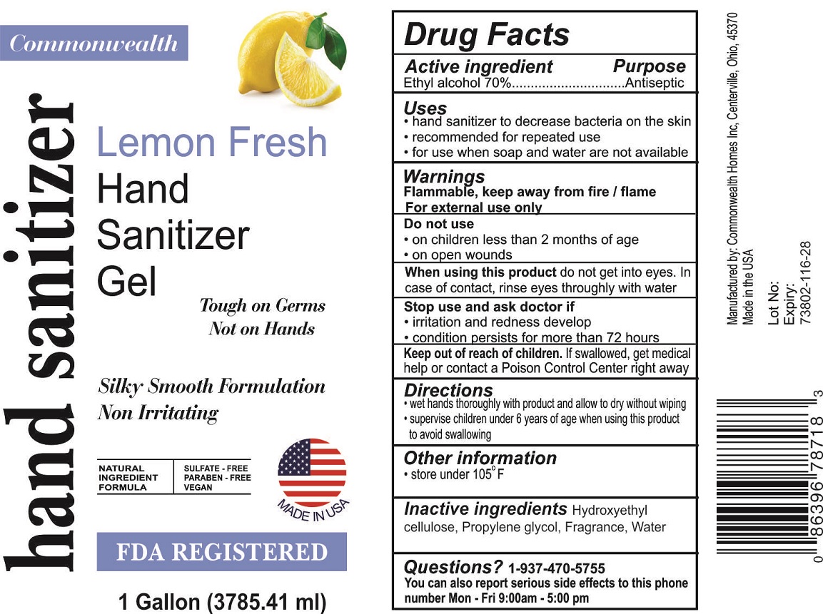 Commonwealth Lemon Fresh Hand Sanitizer Gel Product Label