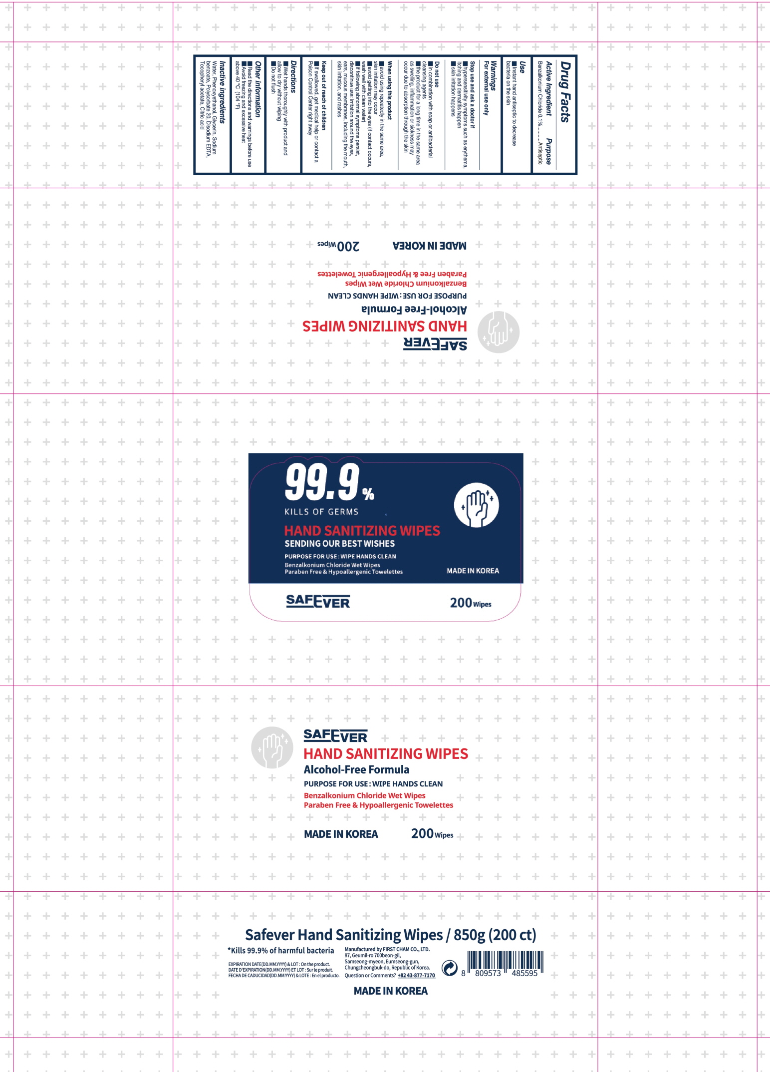 The following 2 images provide visual information about the product associated with Safever Hand Sanitizing Wipes NDC 73923-0140 by Firstcham Co., Ltd, such as packaging, labeling, and the appearance of the drug itself. This resource could be helpful for medical professionals, pharmacists, and patients seeking to verify medication information and ensure they have the correct product.