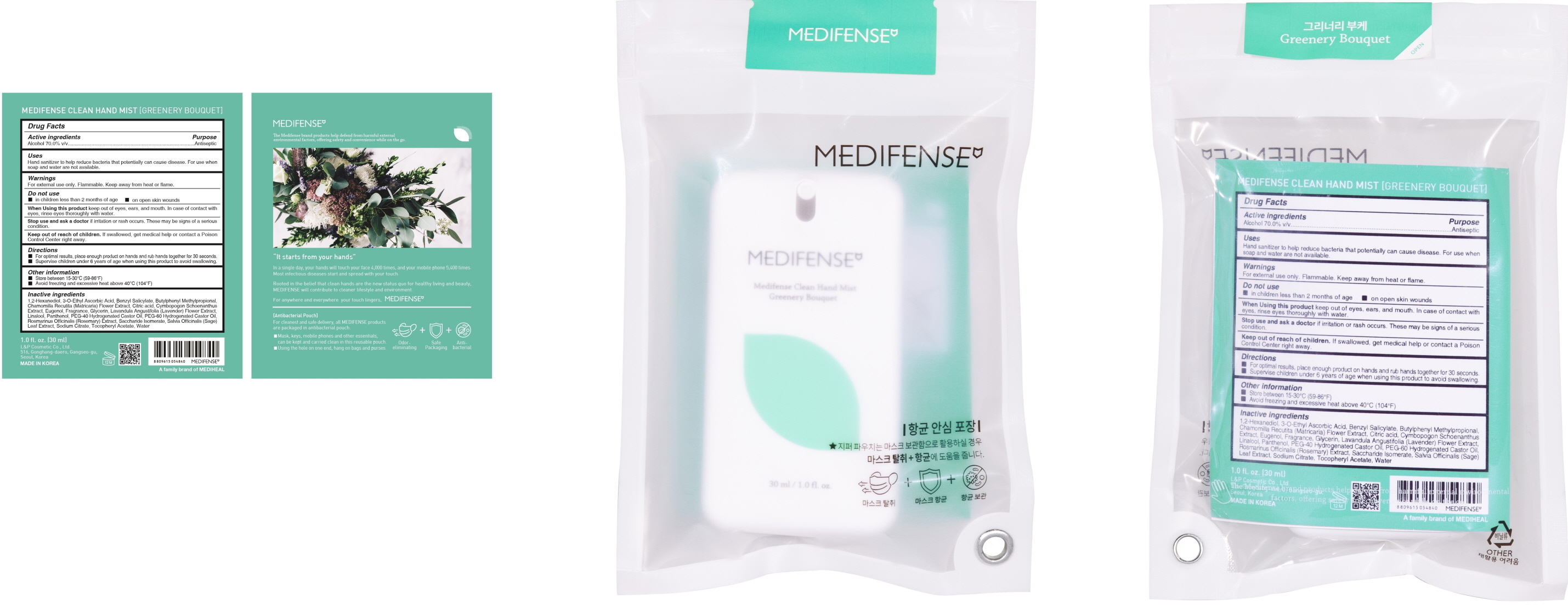 The following image provide visual information about the product associated with Medifense Clean Hand Mist Greenery Bouquet NDC 74005-040 by L&p Cosmetic Co., Ltd., such as packaging, labeling, and the appearance of the drug itself. This resource could be helpful for medical professionals, pharmacists, and patients seeking to verify medication information and ensure they have the correct product.