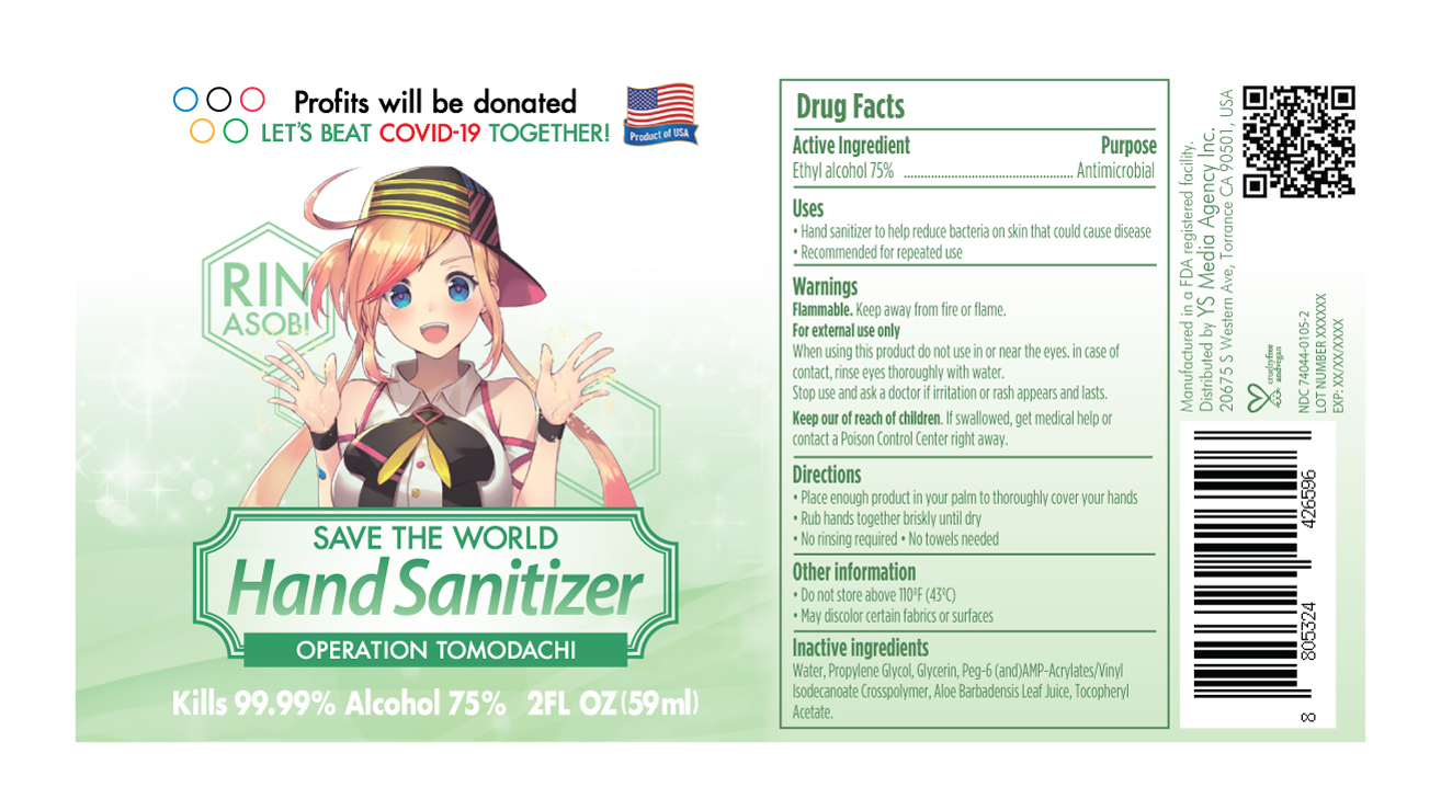 This is a hand sanitizer that contains Ethyl 301on01 75% as an antimicrobial agent. It is recommended for external use only and should not be used near the eyes. It can discolor certain fabrics or surfaces and is flammable so should be kept away from flames. The product is part of an operation called "Operation Tomodachi" and profits from its sale will be donated to fight COVID-19. The inactive ingredients of the sanitizer include water, propylene glycol, glycerin, and Aloe Barbadensis Leaf Juice. There is a lot number and NDC provided, but the expiration date is not available.*