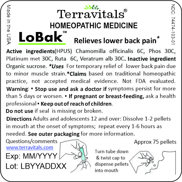 The following 2 images provide visual information about the product associated with Terravitals Lobak NDC 74474-103 by Terravitals Llc, such as packaging, labeling, and the appearance of the drug itself. This resource could be helpful for medical professionals, pharmacists, and patients seeking to verify medication information and ensure they have the correct product.
