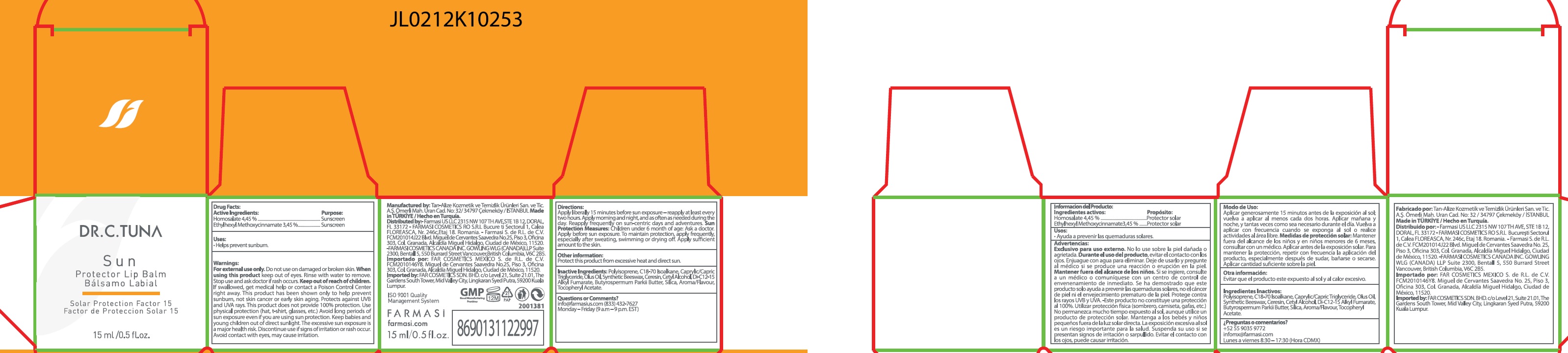 Dr. C. Tuna Sun Protector Lip Balm Spf 15 Product Label