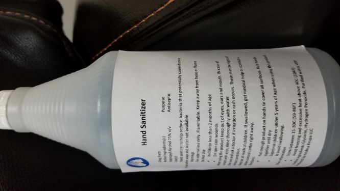 The following image provide visual information about the product associated with Hand Sanitizer NDC 74699-000 by Krishna Krupa Llc, such as packaging, labeling, and the appearance of the drug itself. This resource could be helpful for medical professionals, pharmacists, and patients seeking to verify medication information and ensure they have the correct product.