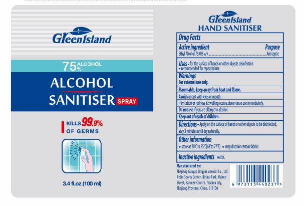 The following image provide visual information about the product associated with Green Island Sanitiser NDC 75742-003 by Zhejiang Guoyao Aerosol Co., Ltd, such as packaging, labeling, and the appearance of the drug itself. This resource could be helpful for medical professionals, pharmacists, and patients seeking to verify medication information and ensure they have the correct product.