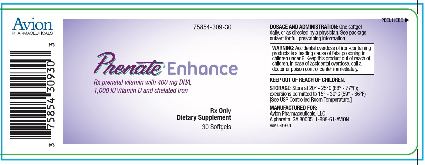 The following 2 images provide visual information about the product associated with Prenate Enhance NDC 75854-309 by Avion Pharmaceuticals, Llc, such as packaging, labeling, and the appearance of the drug itself. This resource could be helpful for medical professionals, pharmacists, and patients seeking to verify medication information and ensure they have the correct product.