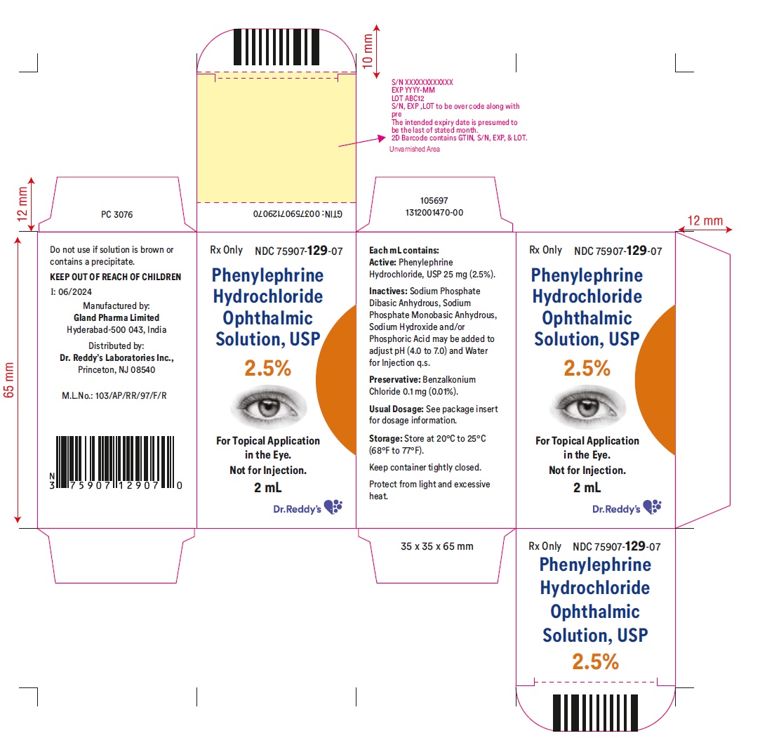 The following 3 images provide visual information about the product associated with Phenylephrine Hydrochloride NDC 75907-129 by Dr.reddy's Laboratories Inc.,, such as packaging, labeling, and the appearance of the drug itself. This resource could be helpful for medical professionals, pharmacists, and patients seeking to verify medication information and ensure they have the correct product.