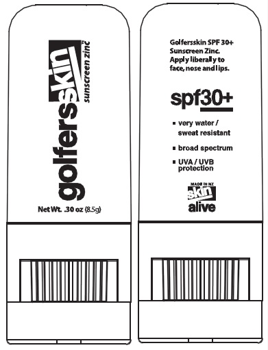 The following 2 images provide visual information about the product associated with Golfersskin Sunscreen Zinc NDC 75916-0635 by Skin Alive, Ltd., such as packaging, labeling, and the appearance of the drug itself. This resource could be helpful for medical professionals, pharmacists, and patients seeking to verify medication information and ensure they have the correct product.