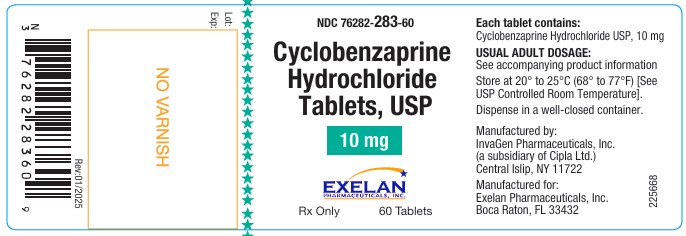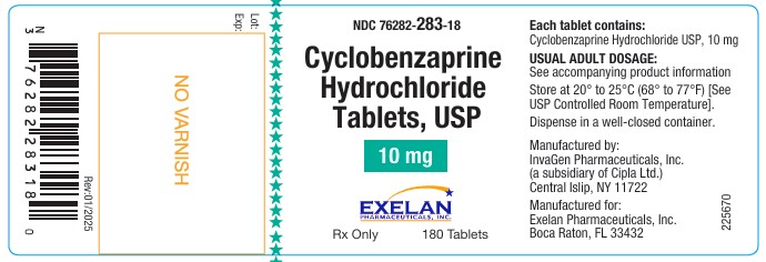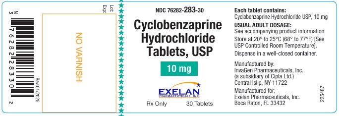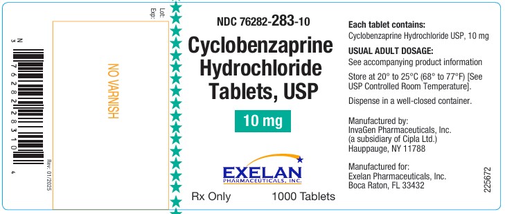 The following 7 images provide visual information about the product associated with Cyclobenzaprine Hydrochloride NDC 76282-283 by Exelan Pharmaceuticals, Inc., such as packaging, labeling, and the appearance of the drug itself. This resource could be helpful for medical professionals, pharmacists, and patients seeking to verify medication information and ensure they have the correct product.