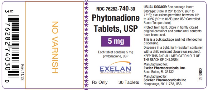 The following 3 images provide visual information about the product associated with Phytonadione NDC 76282-740 by Exelan Pharmaceuticals, Inc., such as packaging, labeling, and the appearance of the drug itself. This resource could be helpful for medical professionals, pharmacists, and patients seeking to verify medication information and ensure they have the correct product.