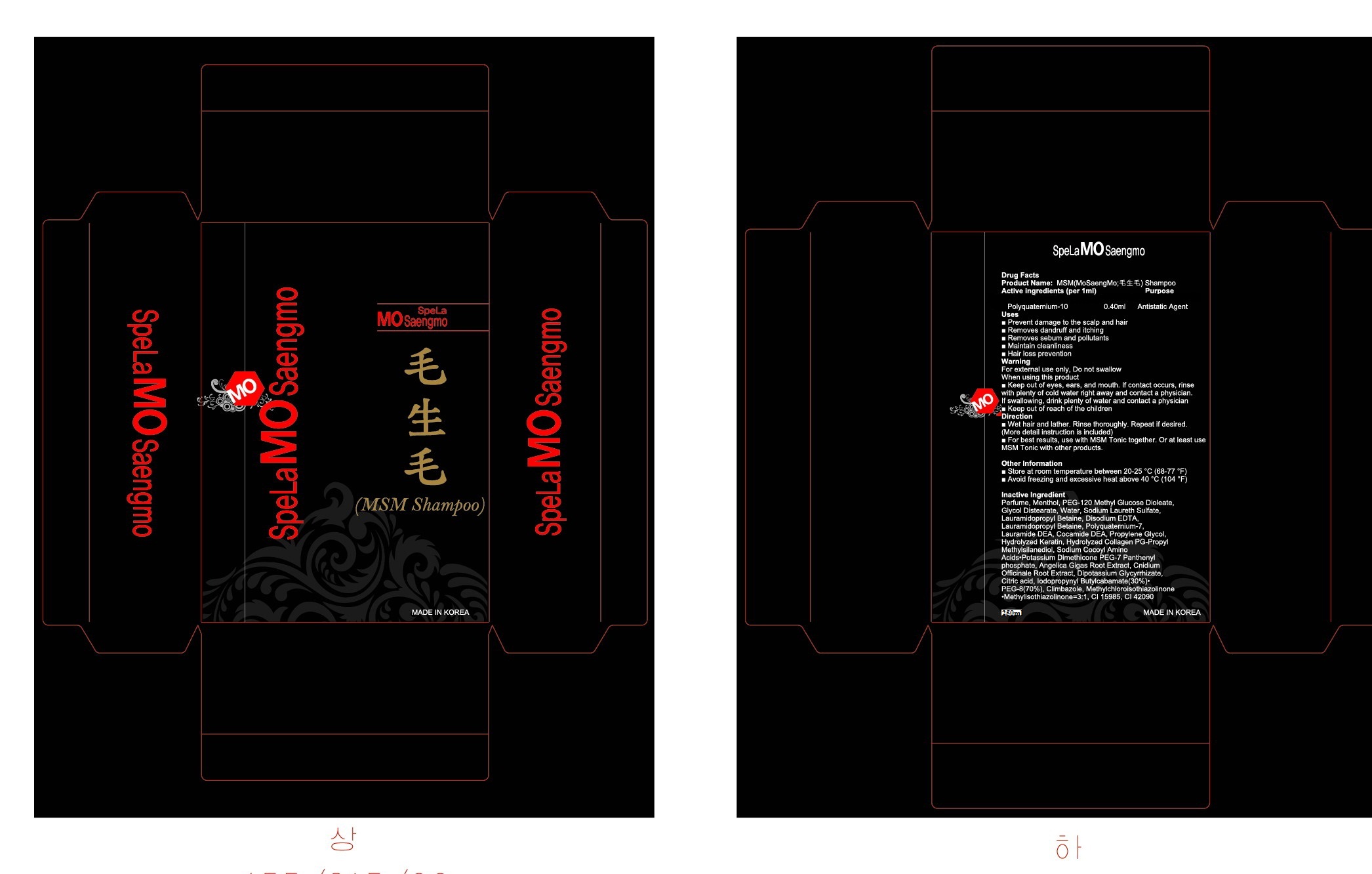 MSM Shampoo is a Korean-made product that prevents damage to the scalp and hair, removes dandruff, itching, sebum, and pollutants while maintaining cleanliness and preventing hair loss. Its active ingredients include Polyquaternium-10, an antistatic agent. The inactive ingredients include Perfum, Menthol, PEG-120 Methyl Glucose Diolate, Giycol Distearate, Water, Sodium Laureth Sulfate, Lauramidopropyl Betaine, Disodium EDTA, Lauramide DEA, Cocamide DEA, Propyiene Glycol, Hydrolyzed Keratin, Hydrolyzed Collagen PG-Propyl Methyisilanediol Sodium Cocoyl Amino, Angelica Gigas Root Extract, Cridum Difcinale Rool Exract, Dipotassium Glycyrmhizate, Gitrc ack, iodopropynyl butylcarbamate (30%), PEG.8 (70%), Climbazole, Methylchlorolsothiazolinone, Methylisothiazolinone=3:1, C| 15985, CI 42090. It is advised not to swallow or use it in the eyes, ears, or mouth. Rinse with cold water if it comes in contact with any of the mentioned organs, and contact a physician immediately. It's recommended to use MSM Tonic with it for better results. It should be stored between 20-25 °C (68-77 °F) and avoid excessive heat above 40 °C (104 °F).*