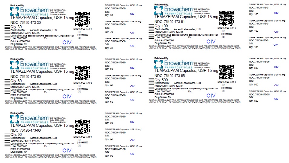 The following 6 images provide visual information about the product associated with Temazepam NDC 76420-473 by Asclemed Usa, Inc., such as packaging, labeling, and the appearance of the drug itself. This resource could be helpful for medical professionals, pharmacists, and patients seeking to verify medication information and ensure they have the correct product.