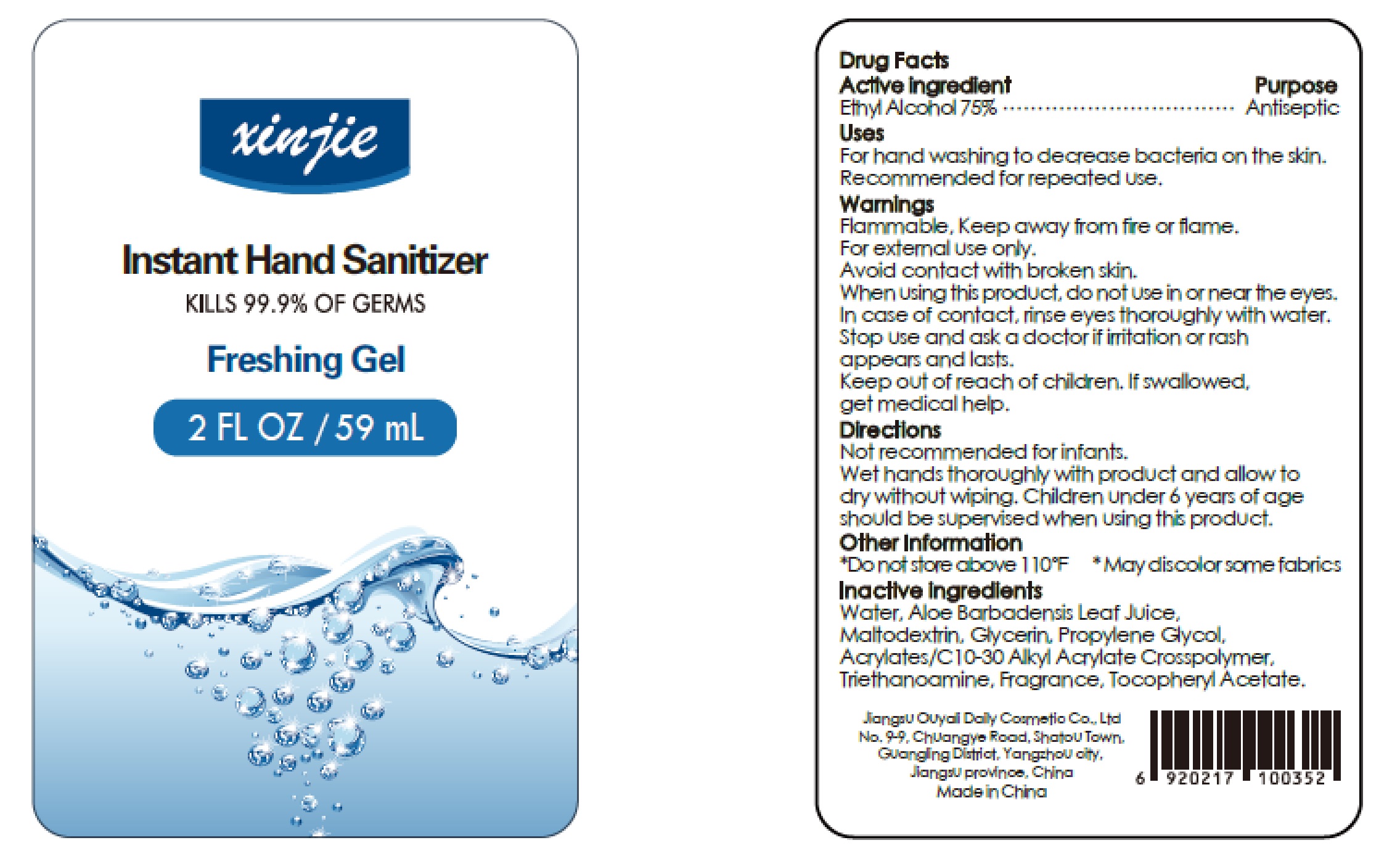 The following image provide visual information about the product associated with Hand Sanitizer NDC 76719-002 by Jiangsu Ouyali Daily Cosmetic Co., Ltd., such as packaging, labeling, and the appearance of the drug itself. This resource could be helpful for medical professionals, pharmacists, and patients seeking to verify medication information and ensure they have the correct product.