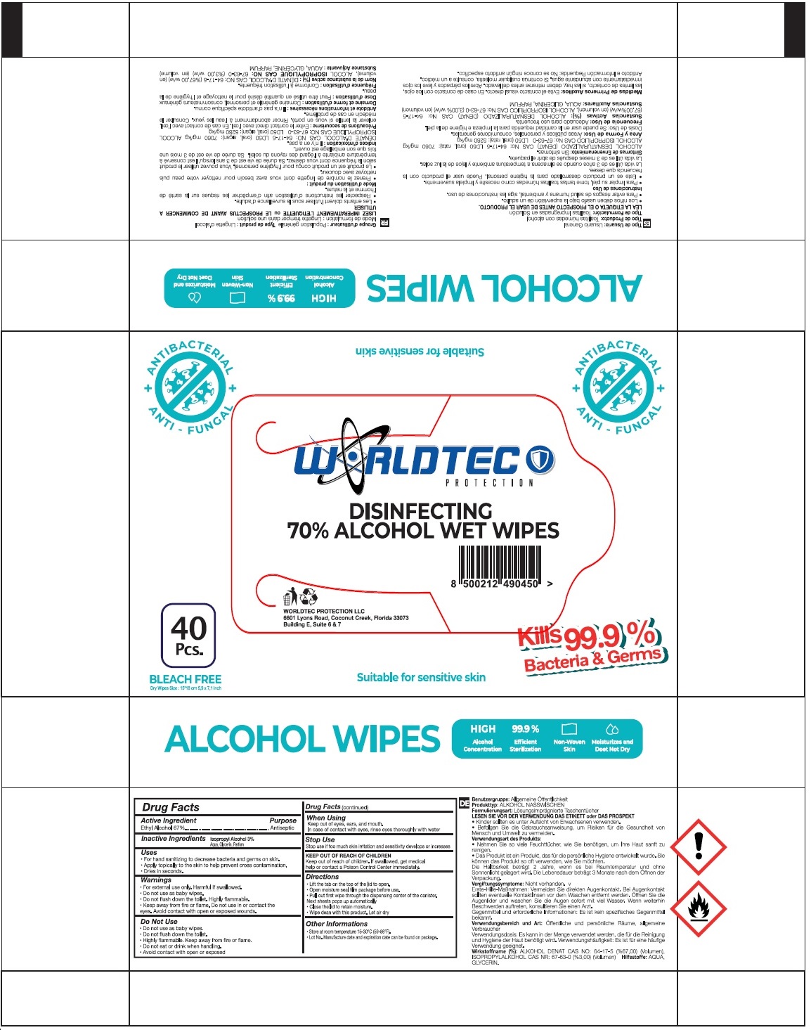Worldtec Disinfecting 70% Alcohol Wet Wipes Product Label