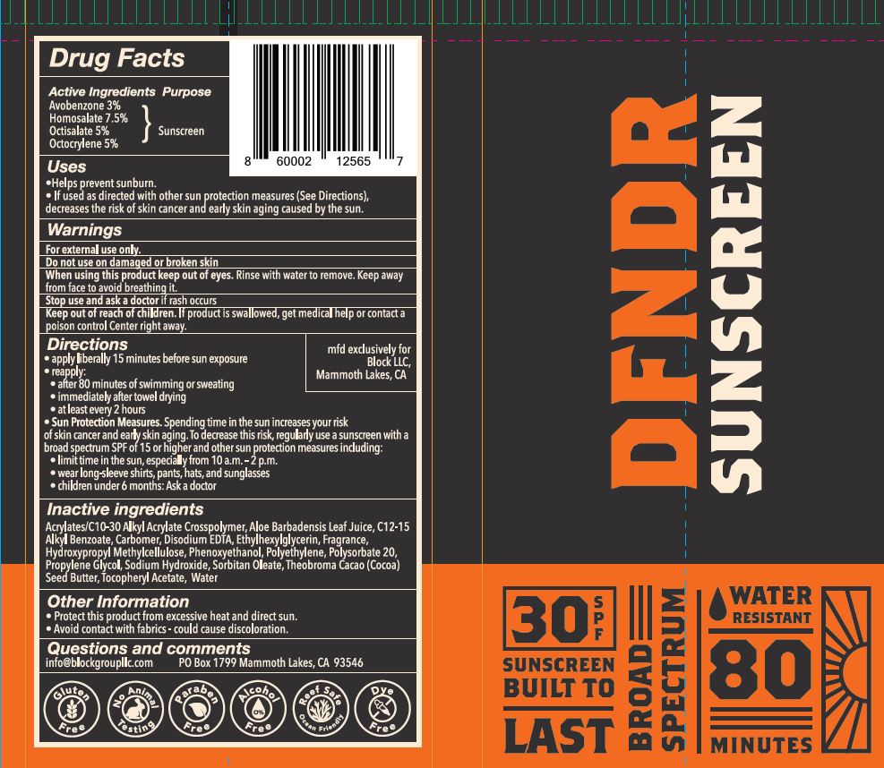 The following image provide visual information about the product associated with Dfndr Sunscreen Spf 30 NDC 76853-105 by Block Llc, such as packaging, labeling, and the appearance of the drug itself. This resource could be helpful for medical professionals, pharmacists, and patients seeking to verify medication information and ensure they have the correct product.