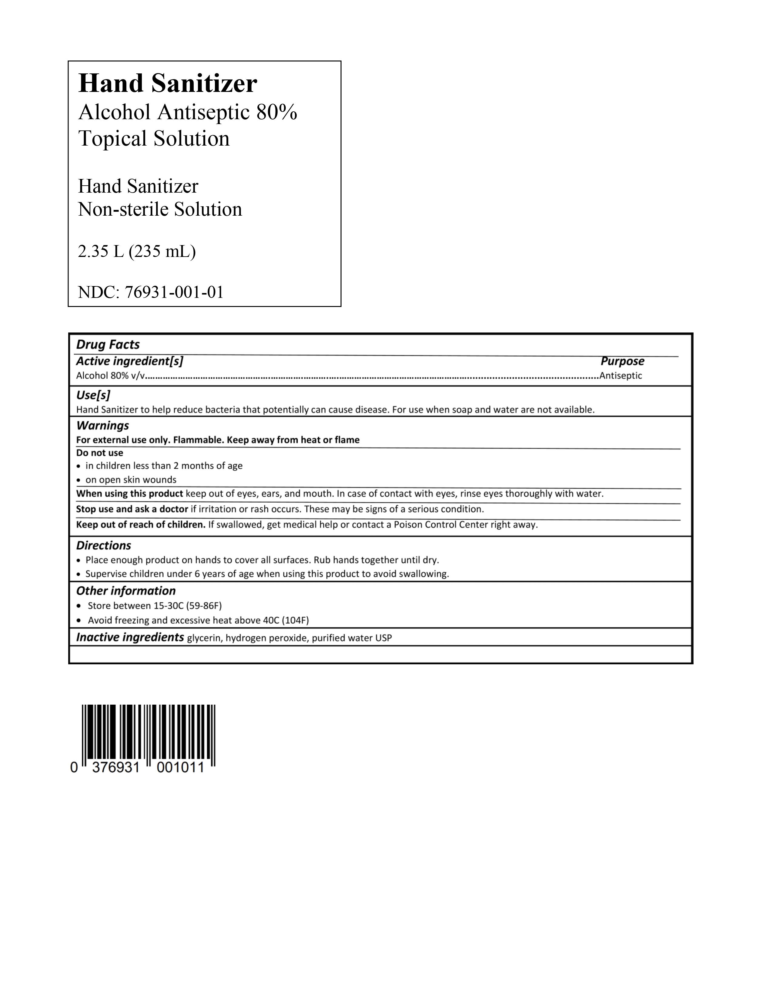 The following image provide visual information about the product associated with Hand Sanitizer NDC 76931-001 by Guangzhou Yizhuang Biological Technology Co., Ltd., such as packaging, labeling, and the appearance of the drug itself. This resource could be helpful for medical professionals, pharmacists, and patients seeking to verify medication information and ensure they have the correct product.
