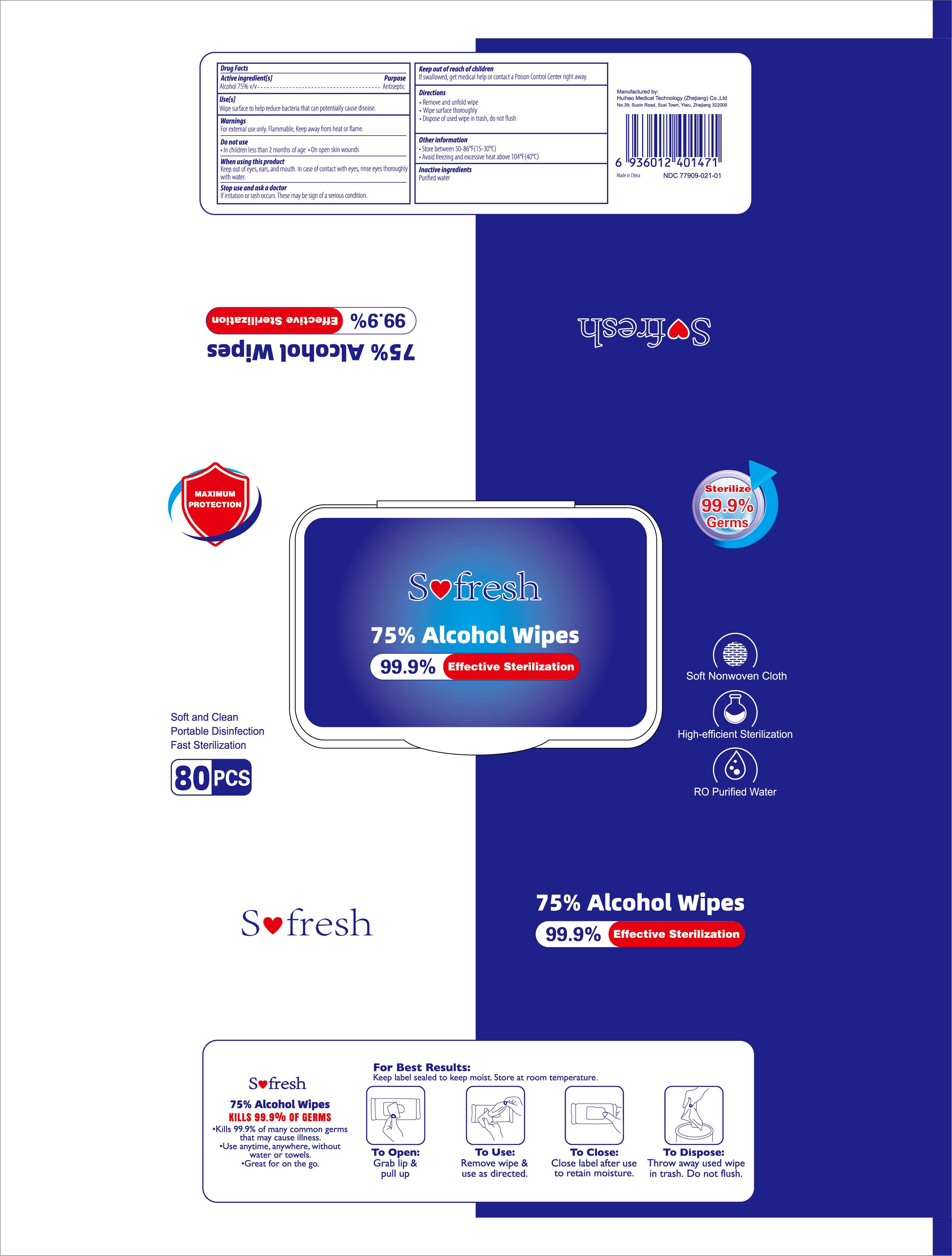 The following image provide visual information about the product associated with Alcohol Wipes NDC 77909-021 by Huihao Medical Technology (zhejiang) Co., Ltd, such as packaging, labeling, and the appearance of the drug itself. This resource could be helpful for medical professionals, pharmacists, and patients seeking to verify medication information and ensure they have the correct product.