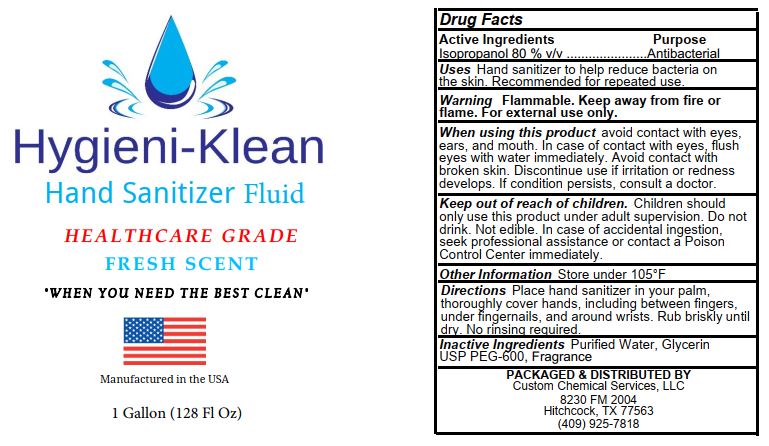 FDA Label for Hygieni-klean Hand Sanitizer Fluid Healthcare Grade Fresh