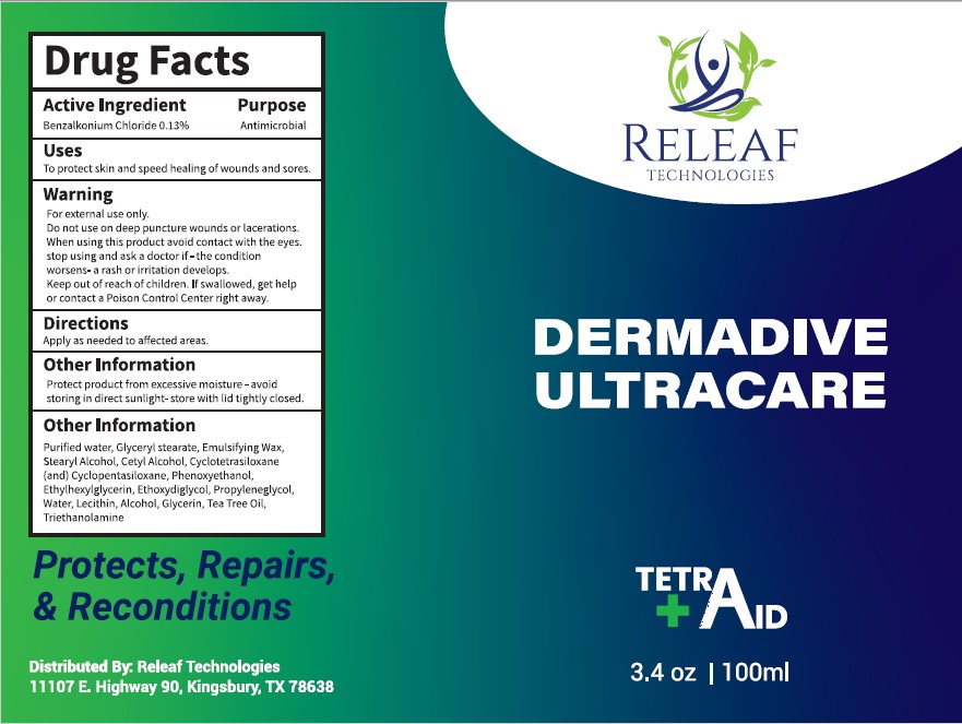 The following image provide visual information about the product associated with Dermadive Ultracare - Tetraid NDC 78663-102 by Releaf Technologies Llc, such as packaging, labeling, and the appearance of the drug itself. This resource could be helpful for medical professionals, pharmacists, and patients seeking to verify medication information and ensure they have the correct product.