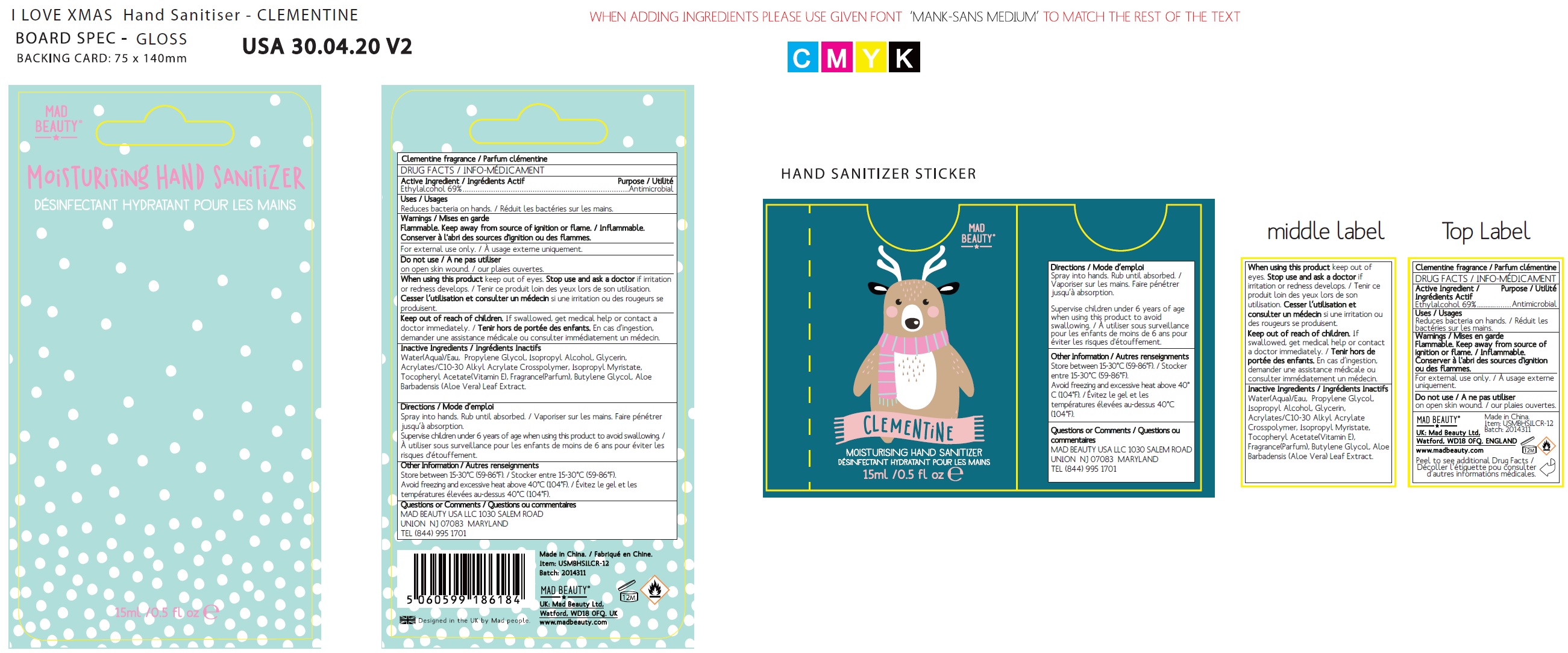 FDA Label for I Love Xmas Reindeer Moisturizing Hand Sanitizer, Clementine
