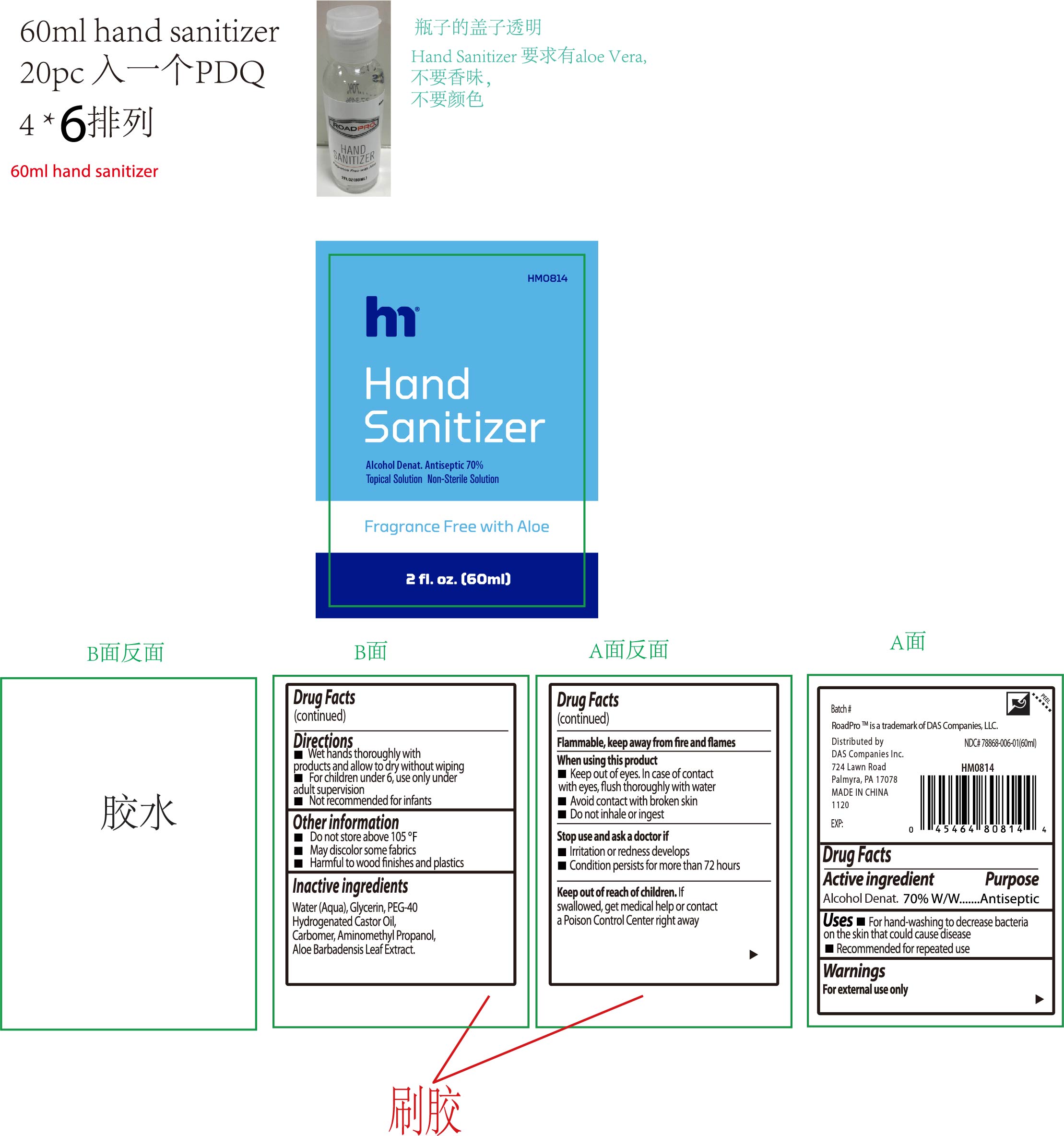 This is a Drug Facts sheet for a 60ml (2 fl. oz.) hand sanitizer with 70% Alcohol Denat. as the active ingredient. The product is recommended for hand-washing to decrease bacteria on the skin that could cause disease. It is fragrance-free and has Aloe Vera. The sheet warns to keep out of eyes and avoid contact with broken skin. It instructs not to inhale or ingest the product and to stop use and ask a doctor if irritation or redness develops. It also cautions that the product is flammable, and should be kept away from fire and flames. The product should not be stored above 105°F, and may discolor some fabrics. The inactive ingredients include Water, Glycerin, PEG-40 Hydrogenated Castor Oil, Carbomer, Aminomethyl Propanol, and Aloe Barbadensis Leaf Extract. Batch# and manufacturer information are provided on the sheet.*