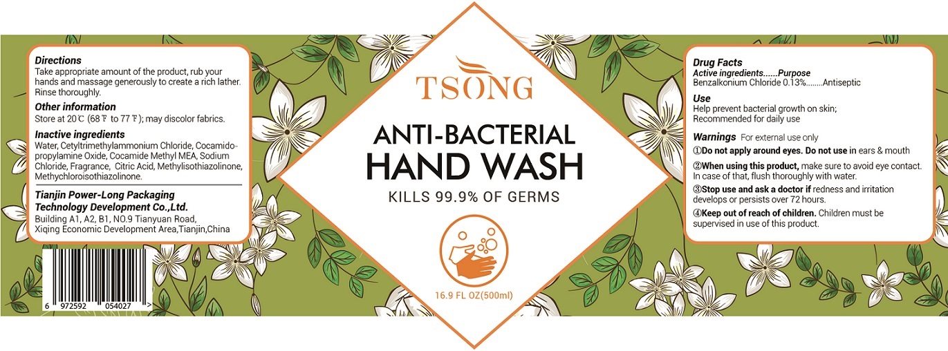 The following image provide visual information about the product associated with Tsong Anti Bacterial Hand Wash NDC 79035-003 by Tianjin Power-long Packaging Technology Development Co.,ltd., such as packaging, labeling, and the appearance of the drug itself. This resource could be helpful for medical professionals, pharmacists, and patients seeking to verify medication information and ensure they have the correct product.